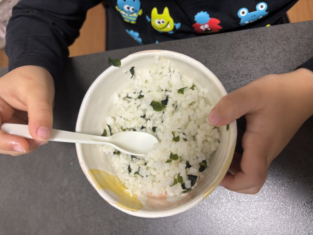 おお~!わかめごはんになってる~
